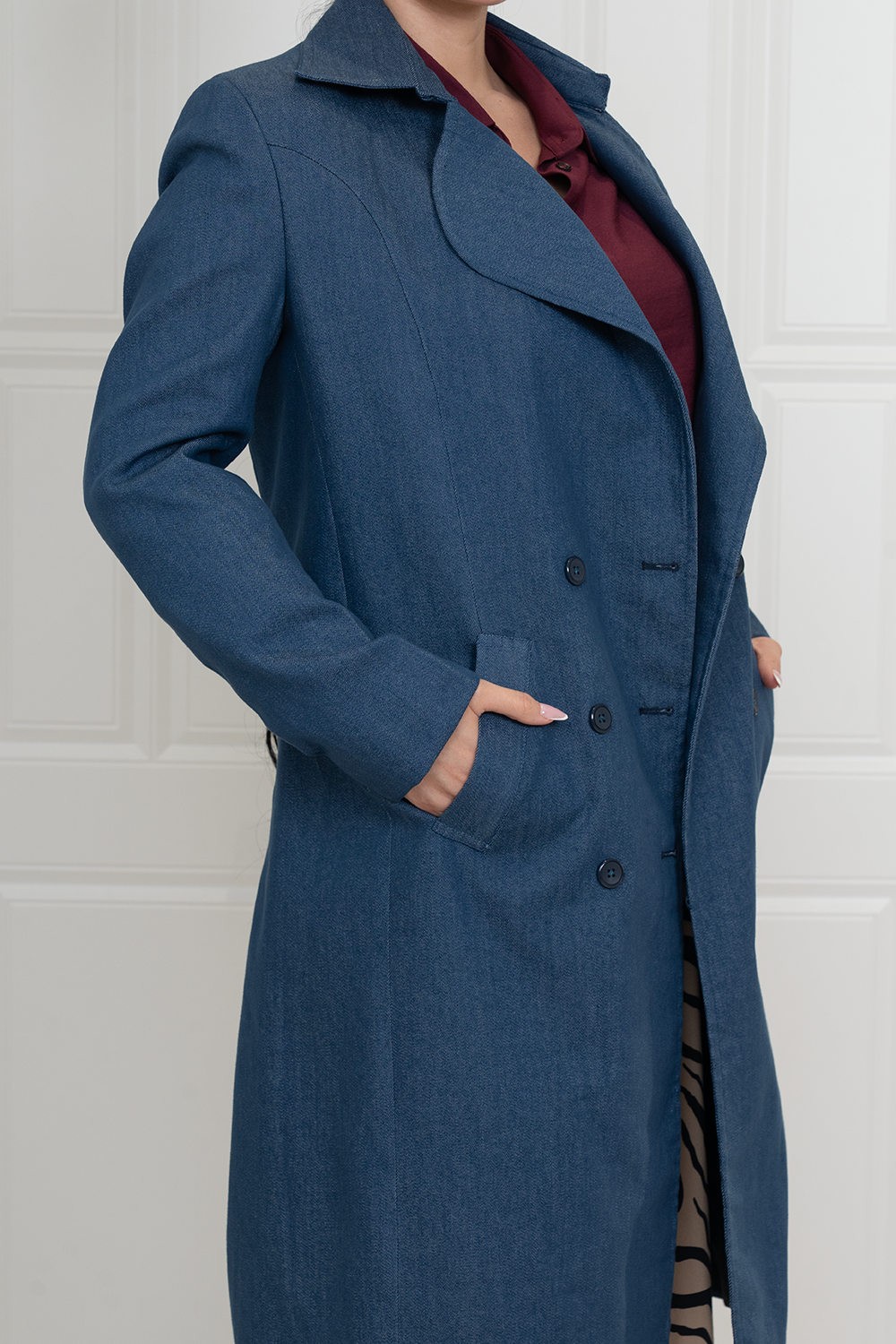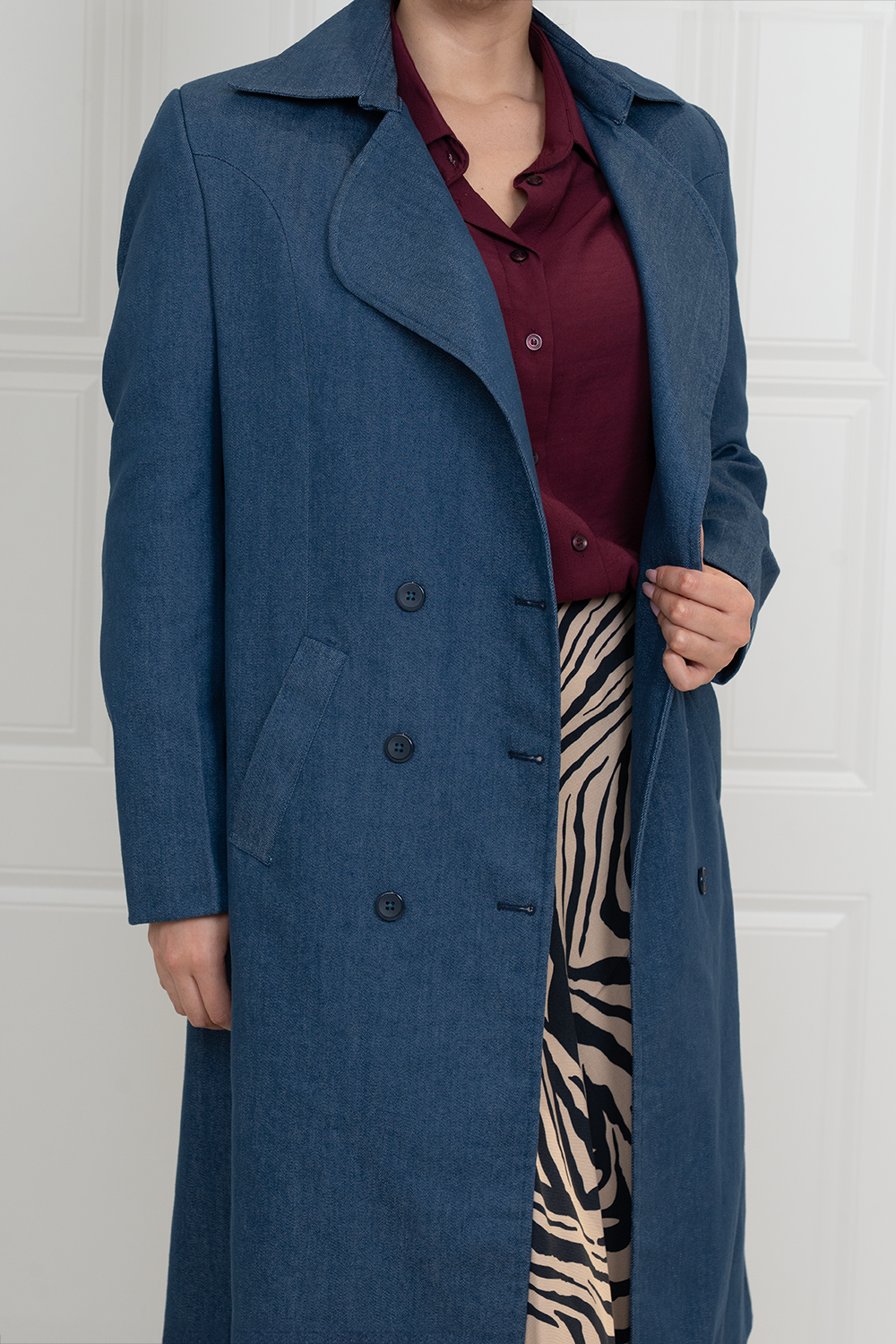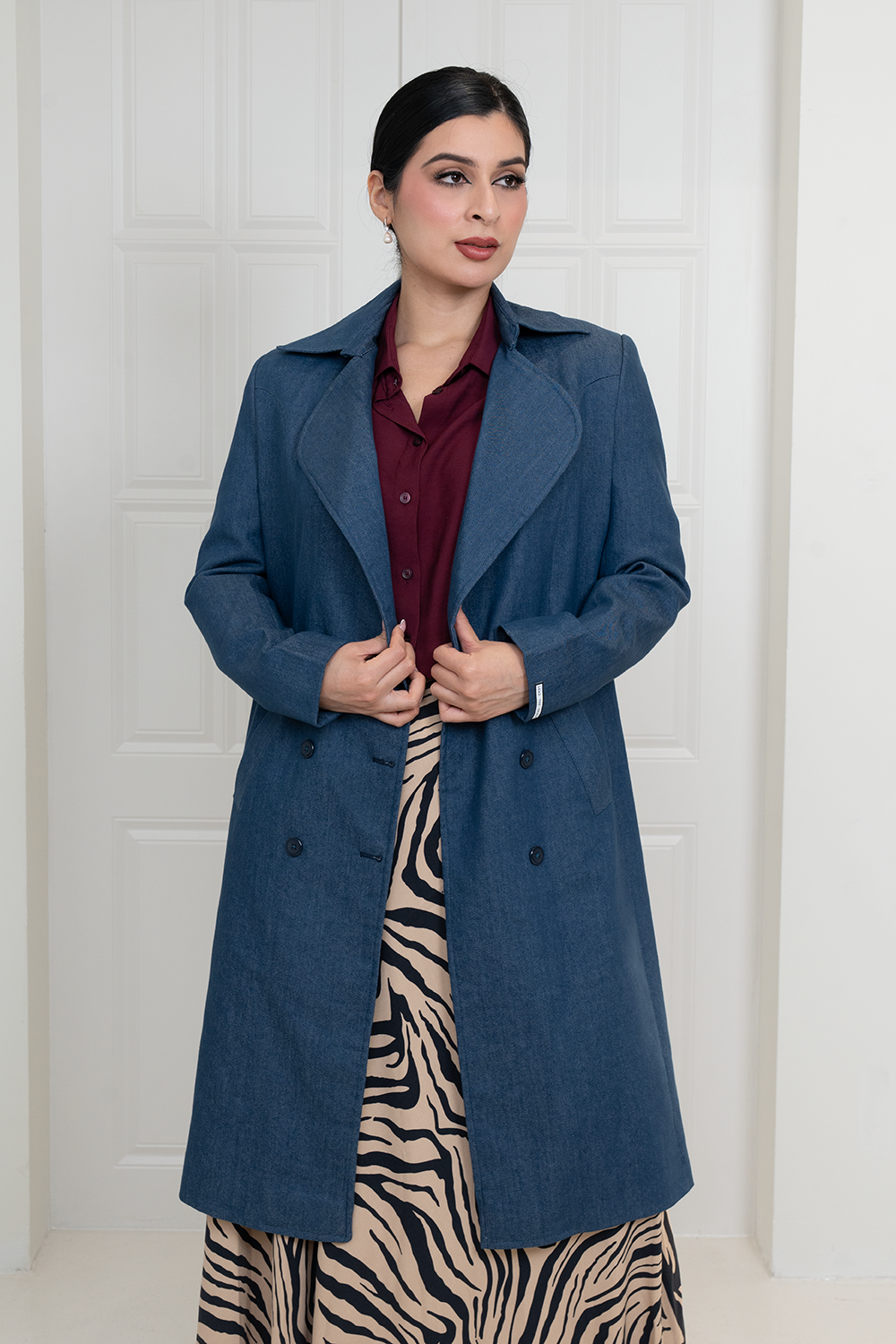 A modern denim jacket designed with clean tailoring and effortless structure. The Linea Denim Jacket features a refined silhouette with sharp lines and a polished finish, blending casual comfort with elevated sophistication. Crafted from premium denim fabric, it offers durability with a soft structured feel, making it ideal for everyday layering.